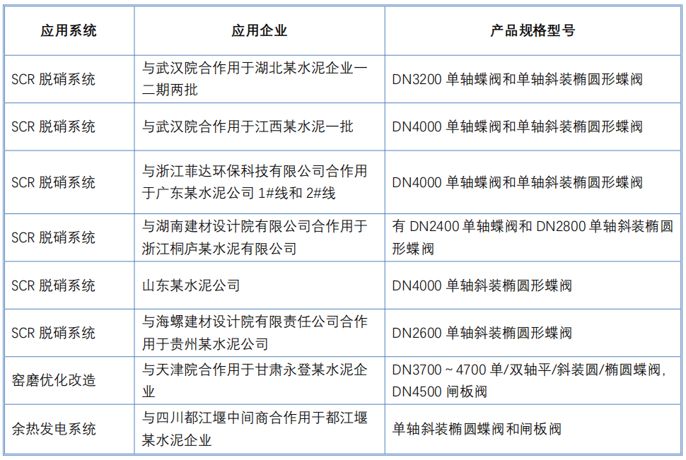 電動(dòng)蝶閥和閘板閥均為耐高溫軟密封“零泄漏”,做功扎實(shí)。閘板閥底部帶空氣炮或壓縮空氣吹掃裝置,能解決閘板因灰結(jié)塊閘不到底的問題。蝶閥密封面帶空氣炮或壓縮空氣吹掃裝置,確保蝶板閉合前密封面清潔,保證密封性。目前這兩種閥門已在水泥行業(yè)華潤(rùn)水泥、南方水泥、中聯(lián)水泥、海螺水泥、祁連山、亞東水泥、拉法基水泥等知名企業(yè)有應(yīng)用。