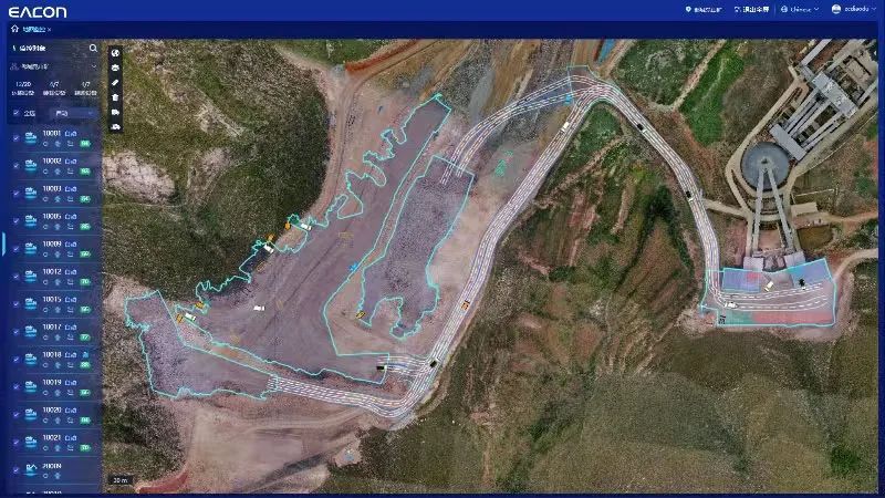 即使在礦山現(xiàn)場(chǎng)存在灑水車、鏟車、挖機(jī)、指揮車等多種施工設(shè)備交叉作業(yè)的情況下,也能正常運(yùn)行。為適應(yīng)礦山現(xiàn)場(chǎng)變化快的生產(chǎn)需求,采用多采區(qū)、多卸載點(diǎn)、多編組的全局動(dòng)態(tài)均衡派車,使無人駕駛作業(yè)高效運(yùn)行。
