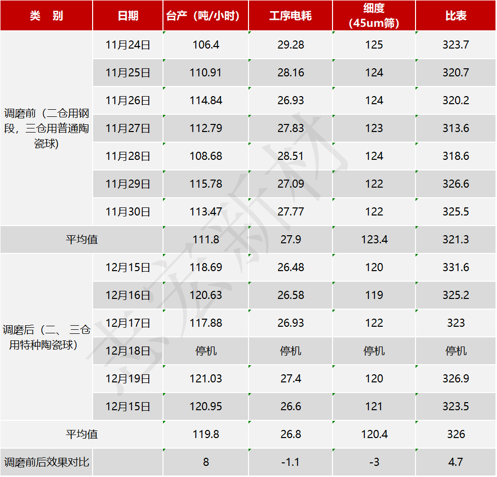 使用特種陶瓷球研磨超細(xì)摻合礦粉運(yùn)行記錄
