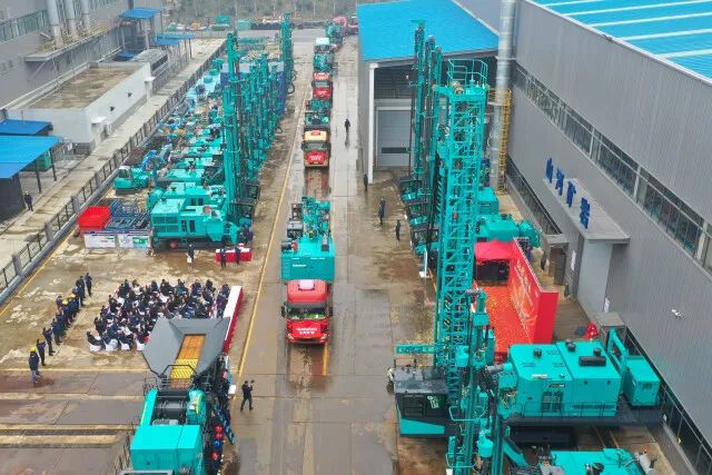 在隨后的新春批量發(fā)貨儀式上,由林宏武向客戶代表李總交付了采購設(shè)備的金鑰匙。“我宣布,山河礦巖新春批量發(fā)貨正式發(fā)車”,隨著何清華的一聲指令,裝載著10余臺鑿巖設(shè)備的車隊浩浩蕩蕩地駛出山河工業(yè)城大門,奔赴全球各地。據(jù)悉,此次發(fā)貨產(chǎn)品涵蓋5種型號設(shè)備,主要發(fā)往我國新疆、安徽等省份,以及南非等國家,助力當(dāng)?shù)氐V山作業(yè)。