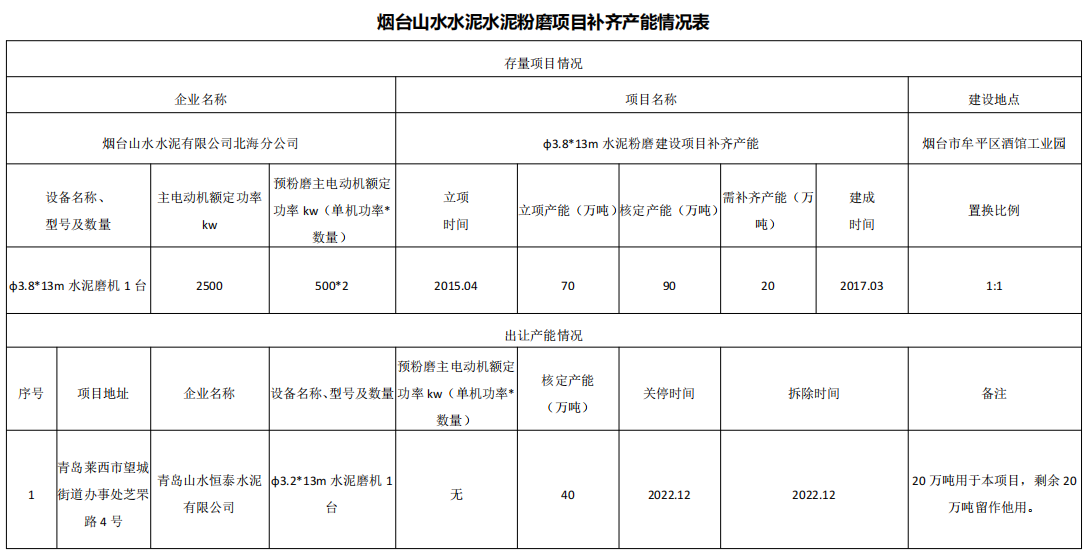 水泥人網(wǎng)注意到9個(gè)存量項(xiàng)目立項(xiàng)產(chǎn)能合計(jì)735萬噸/年,核定產(chǎn)能合計(jì)935萬噸/年,14個(gè)退出項(xiàng)目即需補(bǔ)充產(chǎn)能合計(jì)200萬噸/年。建成時(shí)間從2014年至2023年,補(bǔ)齊產(chǎn)能置換比例1:1。