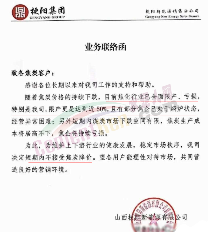 同時(shí),焦企也跟著干,發(fā)函宣布不再降價(jià);地方的行業(yè)協(xié)會(huì)也出來發(fā)文提醒大家,繼而原料企業(yè)也開始發(fā)文了。相關(guān)行業(yè)人士表示,下游需求銳減,不僅導(dǎo)致產(chǎn)能過剩、行業(yè)競爭激烈,價(jià)格狂跌,如此下去,將有很多企業(yè)面臨資金鏈斷裂的風(fēng)險(xiǎn)。