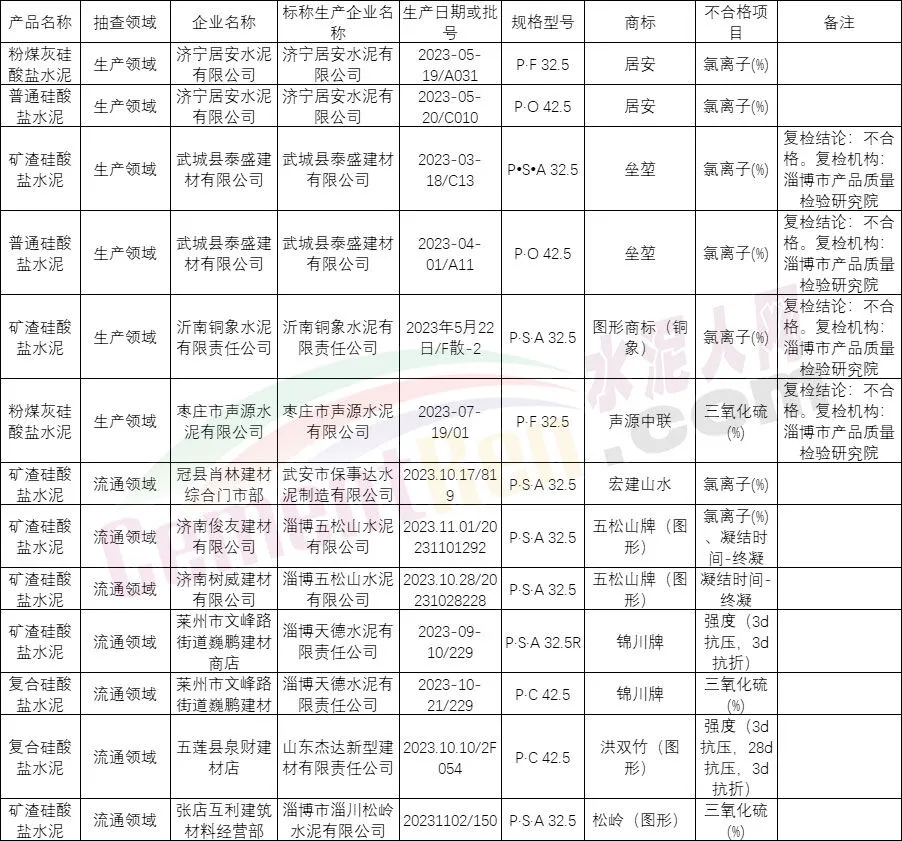 同期,水泥大省山東公布了2023年省級抽檢結(jié)果,其中15批次水泥抽檢不合格。