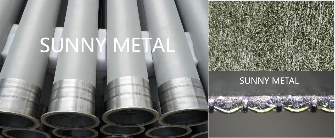 金屬粉氈由金屬粉末和不銹鋼絲網(wǎng)燒結(jié)而成,絲網(wǎng)鑲嵌在粉末中間,起支撐連接作用。