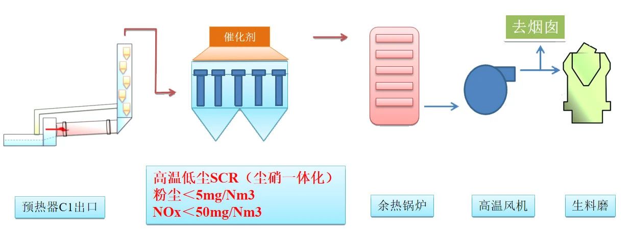 根據(jù)以上原因,金屬濾袋在水泥窯中的脫硝工藝路線(xiàn)推薦如下: