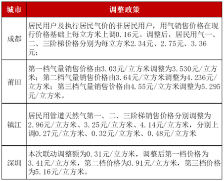 已有超過130個市縣,推動居民燃?xì)鈨r格上漲