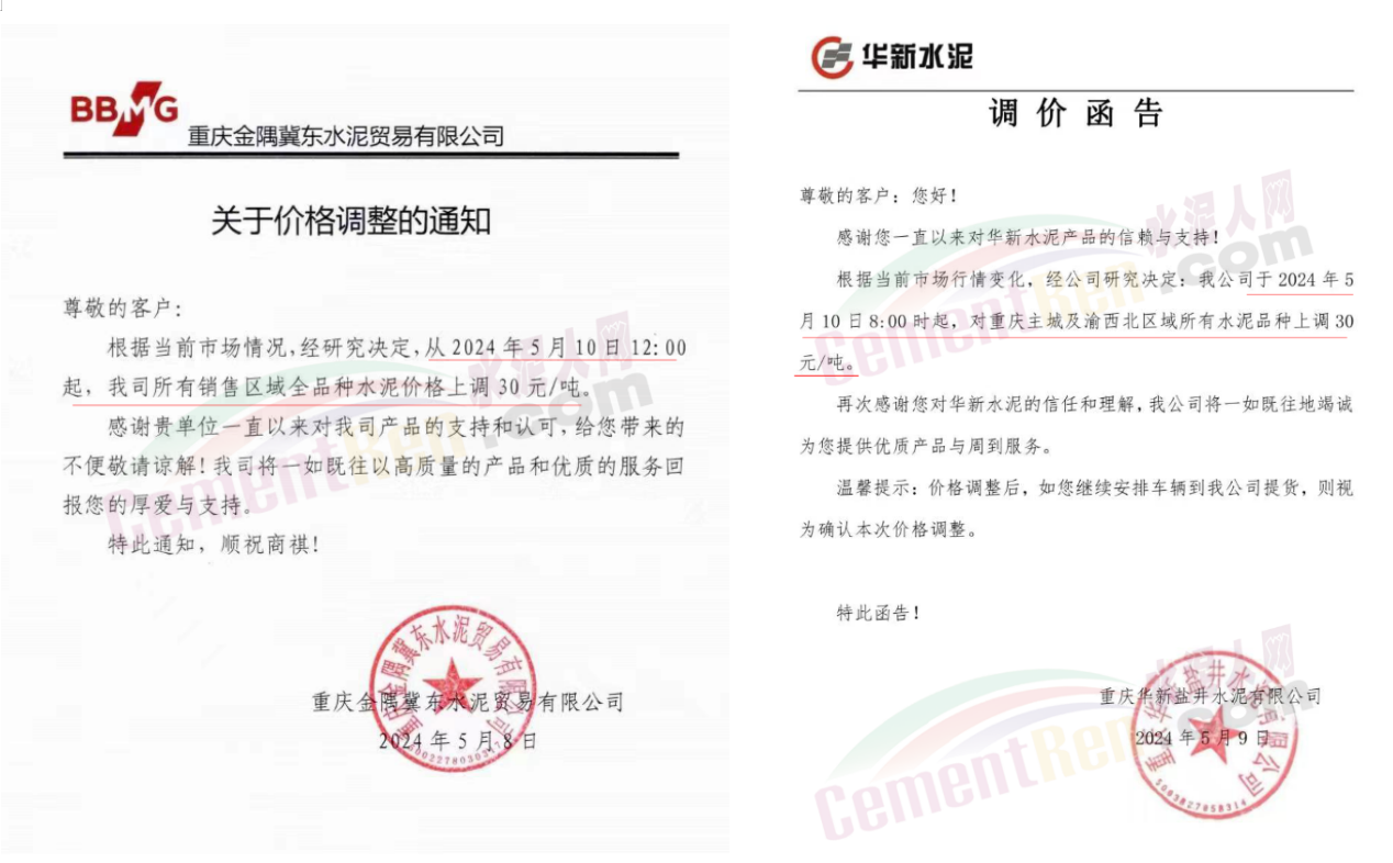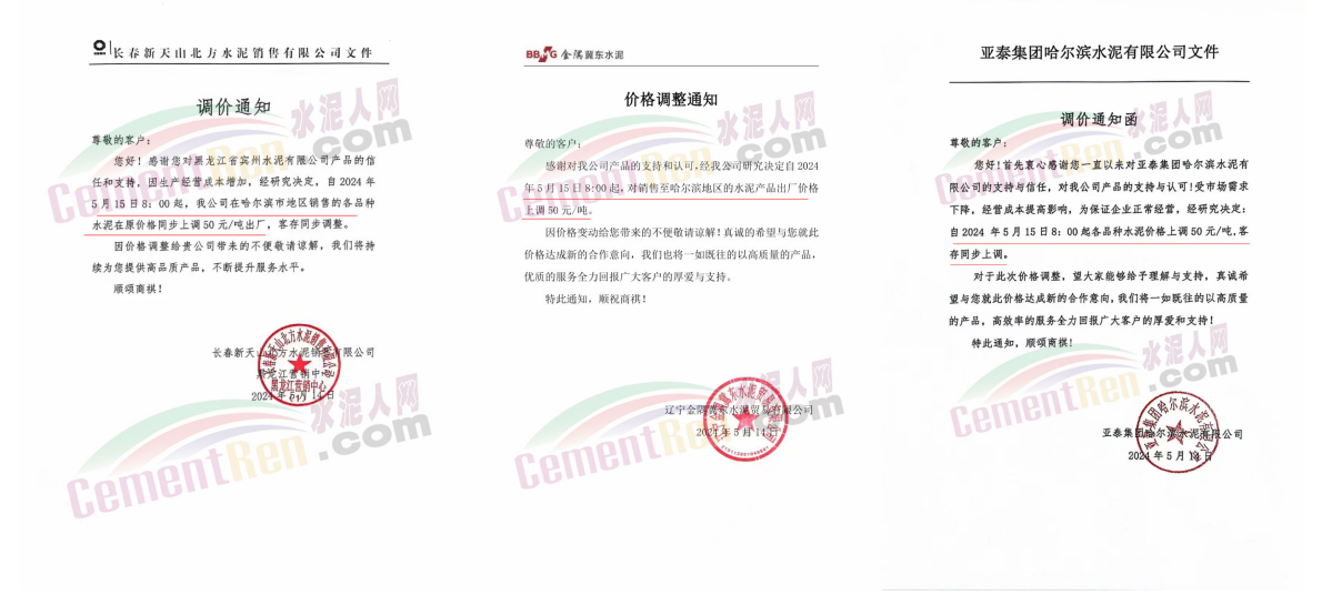同期遼寧、吉林、黑龍江、河北、河南、重慶等多地水泥企業(yè)通知上調(diào)水泥價格30-50元/噸。