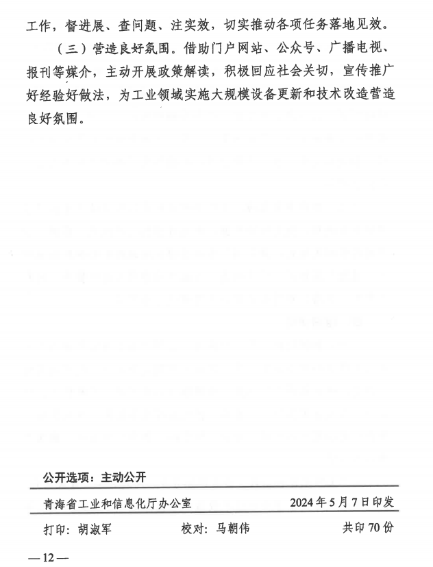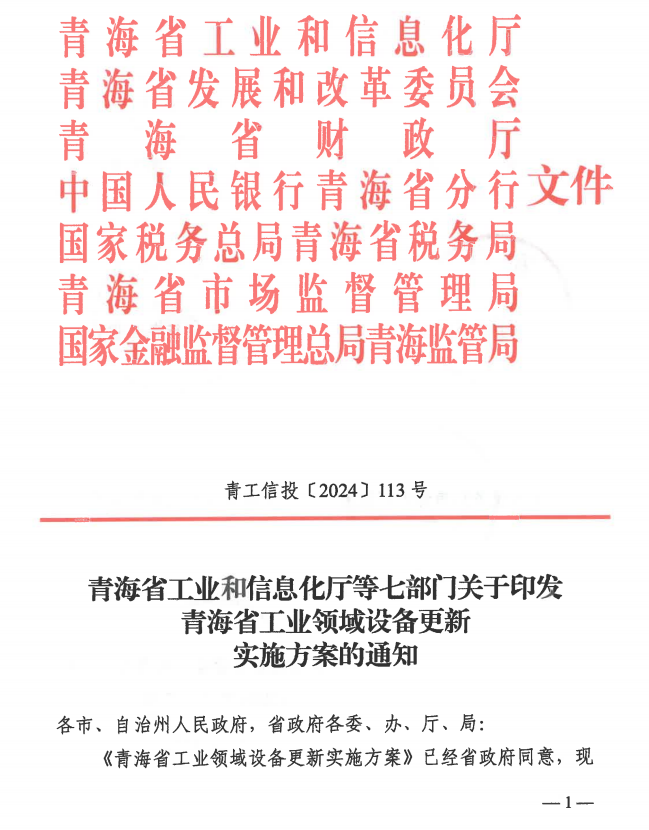 日前,青海省工業(yè)和信息化廳等七部門關(guān)于印發(fā)青海省工業(yè)領(lǐng)域設(shè)備更新實施方案的通知。