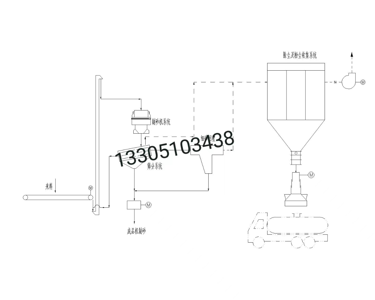 ▲上圖為傳統(tǒng)有篩制砂樓工藝流程