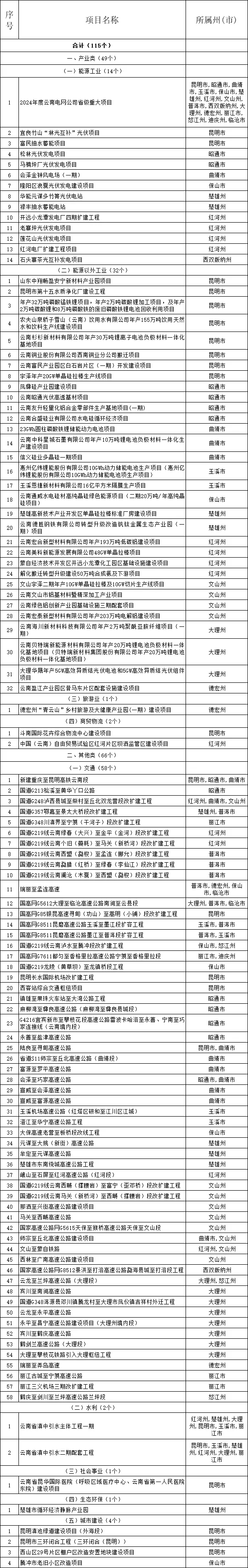 云南省2024年度“重中之重”項(xiàng)目清單