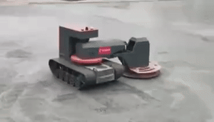 履帶抹平機器人: 整個地面都在發(fā)光,對地面進行提槳、收面和壓實施工工作,收光收面均勻高效,施工效率能達到200~400m²/h。