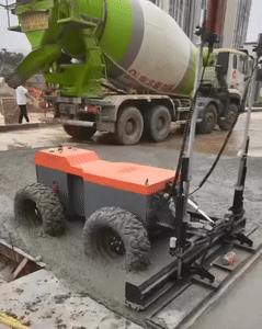 四輪激光地面整平機器人:通過紅外線發(fā)射器精準(zhǔn)控制板面標(biāo)高,進行無痕施工,自動調(diào)整刮平和振搗機構(gòu),施工效率能達到400~600m²/h。