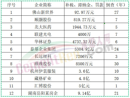 12家企業(yè)被倒查5至30年,補(bǔ)稅90萬至9億元,合計(jì)近25億元