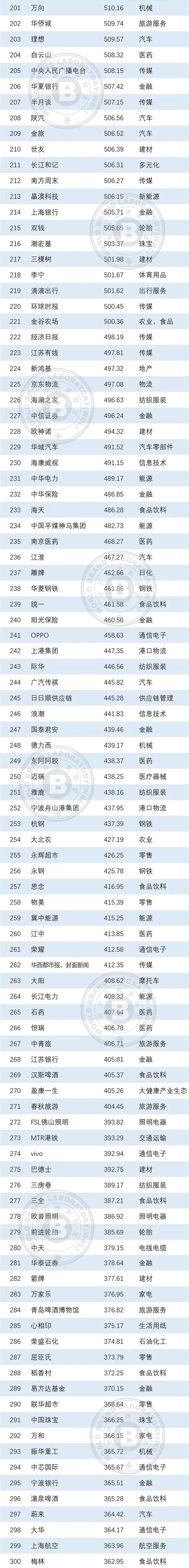 本年度《中國500最具價值品牌》排行榜中,共有來自食品飲料、輕工業(yè)、建材、傳媒、紡織服裝、醫(yī)藥、機(jī)械等在內(nèi)的24個相關(guān)行業(yè)的品牌入選。其中食品飲料業(yè)依然是入選品牌最多的行業(yè),共有80個品牌入選,占總?cè)脒x品牌數(shù)的16.00%;入選數(shù)量位居第二到第五的行業(yè)分別是輕工(41個)、通信電子IT(39個)、建材(36個)、傳媒(32個)。在衡量品牌的忠誠度時,世界品牌實(shí)驗(yàn)室參考了我信品牌(iTrust Rating)的評級數(shù)據(jù);在衡量品牌的領(lǐng)導(dǎo)力特別是ESG(環(huán)境、社會和治理)評分時,參考了超級財經(jīng)(SuperFinance)的ESG數(shù)據(jù)庫。同時還借用了低碳國際(Carboncare International)對品牌企業(yè)碳排放的計量,以推動品牌添加“碳排放評分”標(biāo)簽。