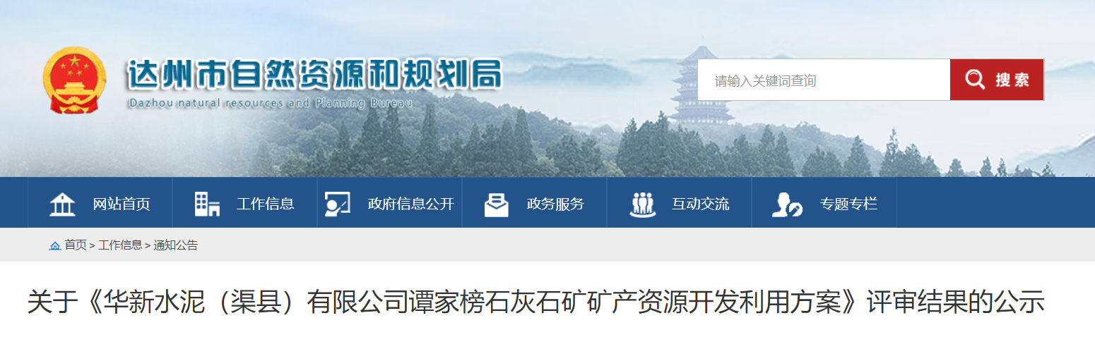 近日,華新水泥(渠縣)有限公司譚家榜石灰石礦礦產(chǎn)資源開發(fā)利用方案通過評審。