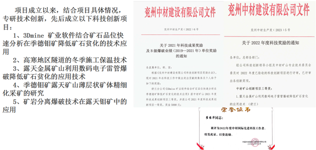 在降本增效方面,分公司積極組織各科室負責人、各專業(yè)技術(shù)負責人進行學(xué)習、討論各項生產(chǎn)流程、施工工序、組織結(jié)構(gòu)等關(guān)鍵環(huán)節(jié),嚴格控制和降低各項施工成本。同時,分公司還堅持創(chuàng)新驅(qū)動理念,結(jié)合礦山實際,積極探索各項新技術(shù)應(yīng)用,其中“3dmine在季德鉬礦降低貧化率的應(yīng)用”的成效顯著,不僅提升了工作效率,還有效降低了成本,該項技術(shù)創(chuàng)新也成功獲得“2021年度中材礦山科技創(chuàng)新一等獎”。