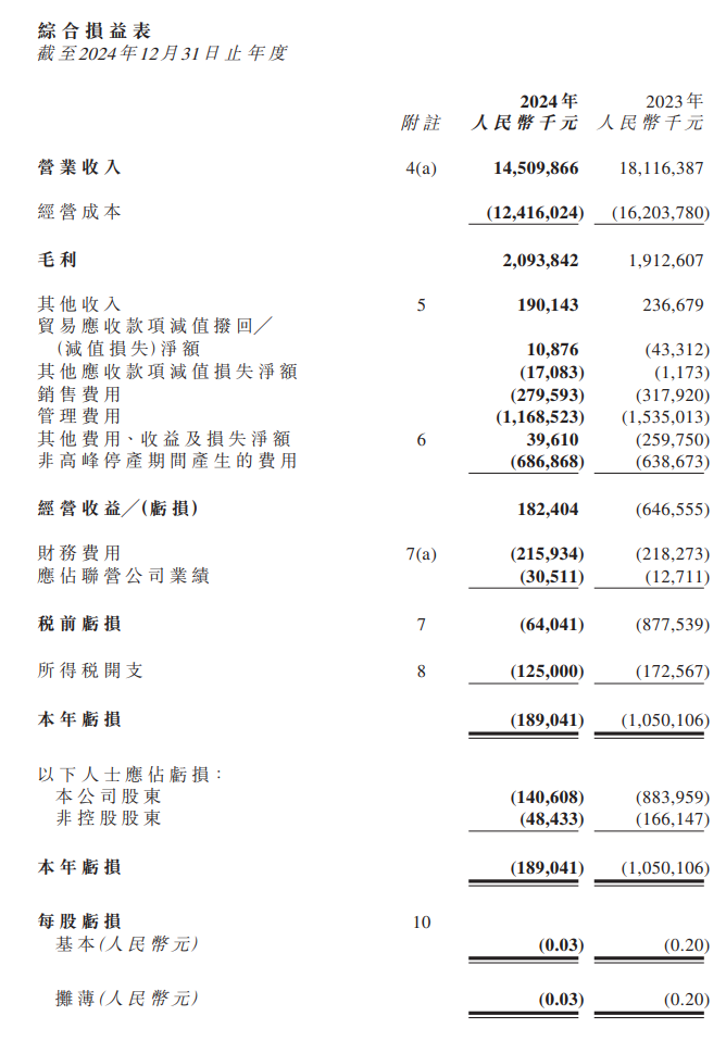 本年度虧損主要由于水泥受市場需求疲弱,銷量下降所致。惟因本年度各項成本及費用控制措施下,營業(yè)毛利上升,銷售、管理及財務費用皆有不同程度的降幅,因而全年虧損同比收窄。