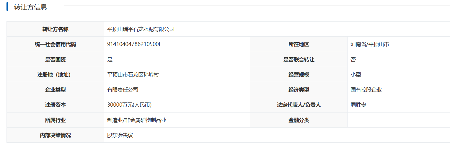 本次出讓標(biāo)的為平頂山瑞平石龍水泥合法持有的水泥熟料產(chǎn)能指標(biāo),對應(yīng)生產(chǎn)許可證編號(豫)XK08-001-00127,生產(chǎn)地址位于河南省平頂山市石龍區(qū)孫嶺村。轉(zhuǎn)讓方為國有控股企業(yè),本次轉(zhuǎn)讓已履行股東會決策程序,指標(biāo)整體出讓、不拆分、不接受聯(lián)合受讓,嚴(yán)格遵循工信部《水泥玻璃行業(yè)產(chǎn)能置換實施辦法(2024 年本)》要求規(guī)范操作。